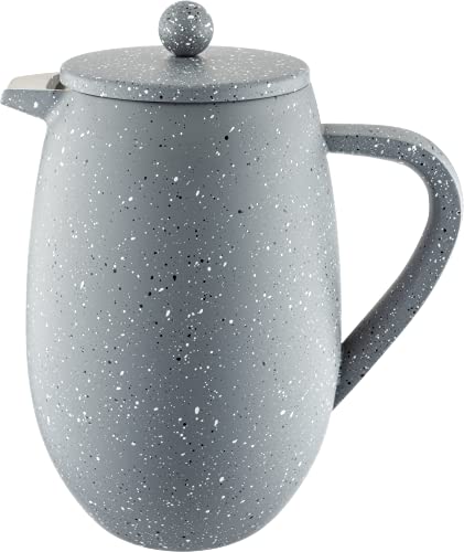 Café Olé BFD Granite Cafetière, corps à double paroi en acier inoxydable 18/10 et filtre à mailles, finition effet granit gris, 1000 ml (8 tasses à espresso ou 4 tasses)
