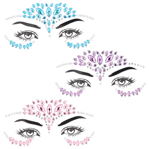 Zeayebsr 3pcs Ensembles de Gemmes de Visage, Strass Visage Tatouage Temporaire, Tatouage de Bijoux de Visage de Strass,Paillette Visage Festival,Strass Visage Enfant,Festival