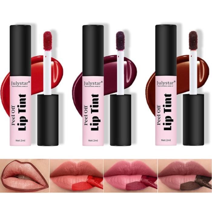 3PCS Crayon à lèvres EncreurTatouage Encreur à lèvres PelablePeel Off Lip Liner TattooGloss Rose Nude Mat pour tous Types de