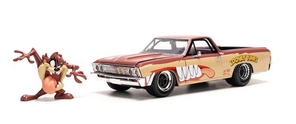 Jada Toys Looney Tunes Taz & 1967 Chevrolet EL Camino – Voiture Miniature Chevy (19 cm) avec Figurine Tasmanian Devil (5 cm), Ensemble de Jouets en métal pour Adultes et Enfants à partir de 8 Ans