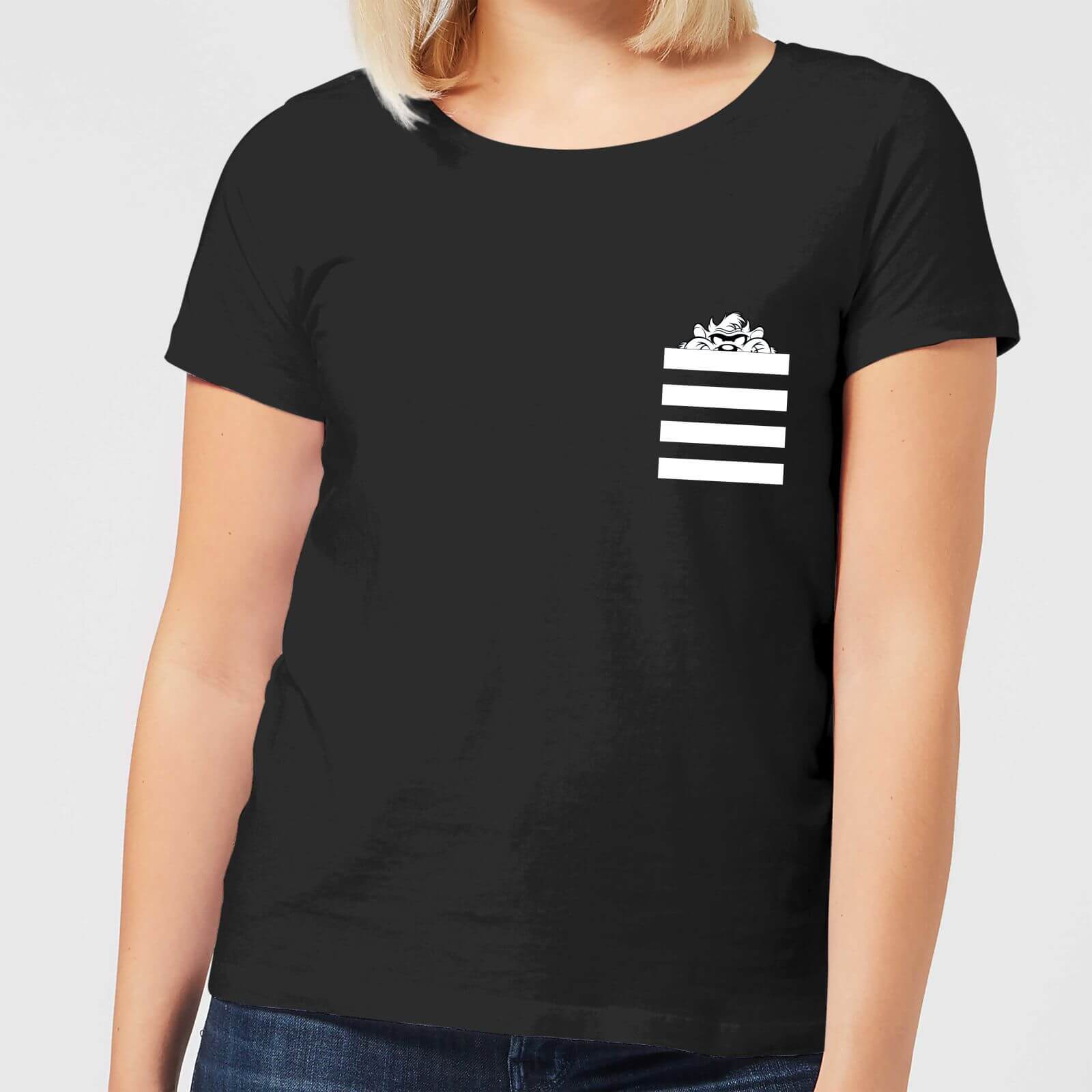 T-Shirt Femme Taz Poche à Rayures Looney Tunes - Noir - M