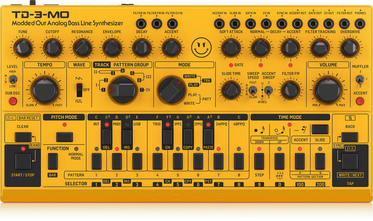 Behringer TD-3-MO Synthétiseur de Ligne de Basse Analogique Modifié Jaune