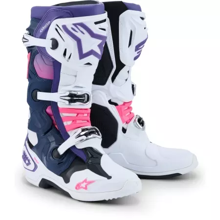 Bottes Cross Alpinestars Tech 10 Blanc Violet Bleu Marine Rose Fluo