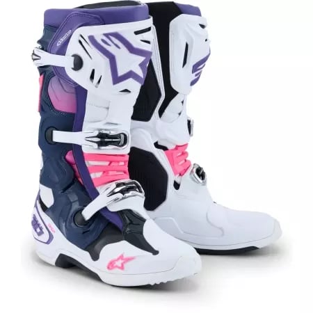 Bottes Cross Alpinestars Tech 10 Blanc Violet Bleu Marine Rose Fluo - Equipement Cross ALPINESTARS