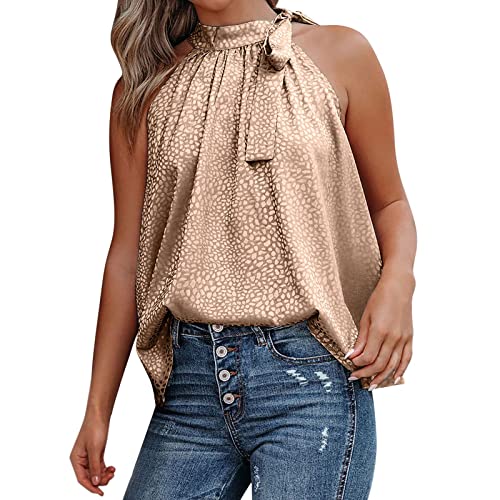 Debardeur Femme Col Licou- Gilet sans Manche Sexy,Tee Shirt Femme Chic et Elegant Tops Solide Tunique D'été Grande Taille Chemise Loisirs avec Noeud Papillon Haut de Mode Charmant