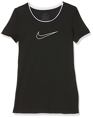 Nike - Pro - T-Shirt - Fille - Noir (Black/White) - Taille: S (Taille Fabricant: 128-137 cm/8-10 ans)