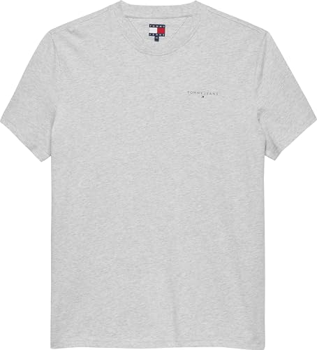Tommy Jeans T-Shirt Manches Courtes Homme Linear Chest Tee Slim Fit, Gris (Lt Grey HTR), 4XL