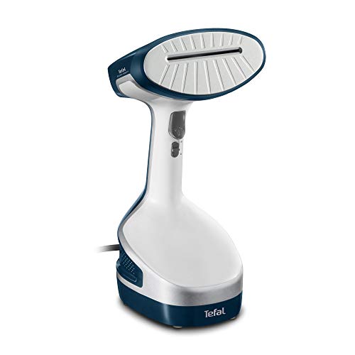 Tefal DT8100 Access Steam+ Defroisseur vapeur, avec hotte vapeur, brosse à peluches, crochet pour vêtements, réservoir d'eau 190 ml, 1600 W, bleu, et blanc