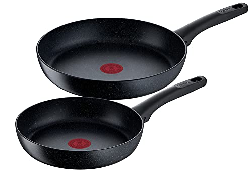Tefal G28191 Black Stone Lot de 2 poêles 24/28 cm Revêtement antiadhésif, indicateur de température du signal thermique, convient pour induction, noir