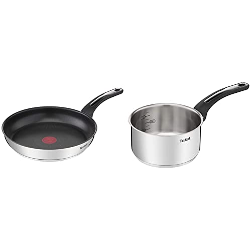 Tefal Emotion Poêle 20 cm, Revêtement antiadhésif, Garantie 10 ans & Emotion Casserole 18 cm inox, Garantie 10 ans, Base épaisse pour une diffusion de chaleur homogène, Design élégant