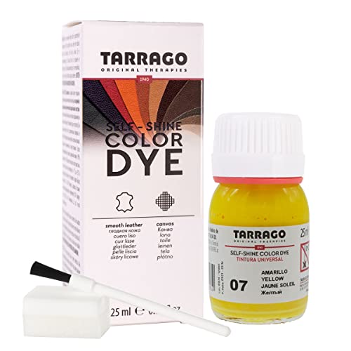Tarrago | Teinture de couleur auto-brillante 25 ml | Teinture réparatrice pour cuir et toile au fini brillant pour la teinture de chaussures et accessoires | Séchage rapide, Anti-frottement (jaune 07)