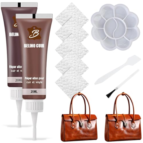 BAHME 2 Pièces Teinture Cuir, Kit de Réparation pour Liquide, Renovateur Cuir, pour Siège Auto, Veste, Chaussures et Meubles (Brun)