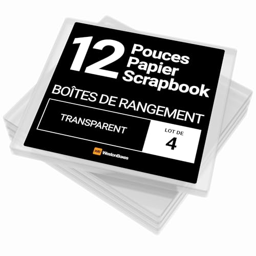 WestonBoxes Essentiels de Scrapbooking pour Loisirs Créatifs 12x12 (12,5 x 13,5 Pouces / 31 x 33,5 cm) - Boîtes de Rangement en Plastique avec Couvercles (Lot de 4)
