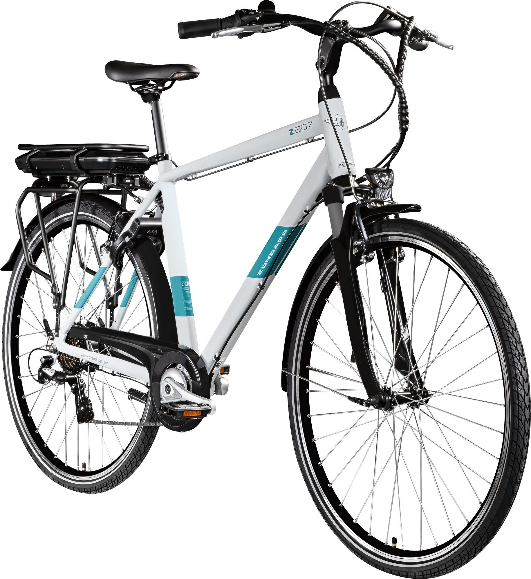Vélo électrique Zündapp Z807 E, vélo de randonnée 28 pouces pour homme (155 - 185 cm), 7 vitesses, gris télé/turquoise
