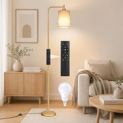 Rosnek Lampadaire Sur Pied Salon avec TéléCommande, 12 W, Sans Fil et à Intensité Variable, Ampoule Led E27 Avec TempéRature De Couleur Infinie Et Interrupteur Au Pied, IdéAl Pour Le Salon (Doré)