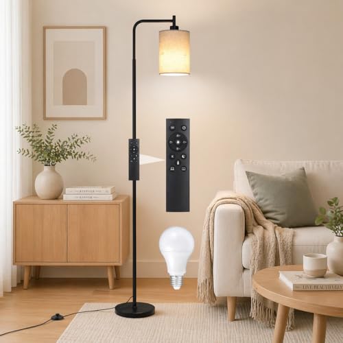 Rosnek Lampadaire Sur Pied Salon avec TéléCommande, 12 W, Sans Fil et à Intensité Variable, Ampoule Led E27 Avec TempéRature De Couleur Infinie Et Interrupteur Au Pied, IdéAl Pour Le Salon (Noir)