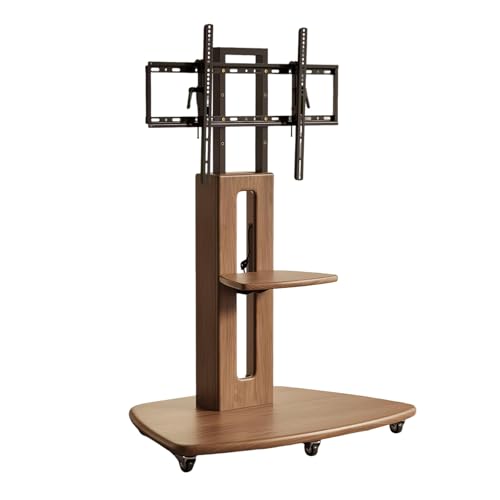 Support TV roulettes pour Ecran Télé 43-75 Pouces,Support TV sur Pied avec Étagères Peut Supporter 90 kg,Hauteur réglable, Chariot TV Mobile avec Base en Bois