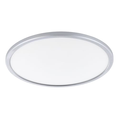 Eglo Plafonnier LED Campaspero 2, lampe de plafond plate dimmable avec télécommande, éclairage pour salle de bain, plastique argenté, blnc chaud-froid, IP44, Ø 42 cm