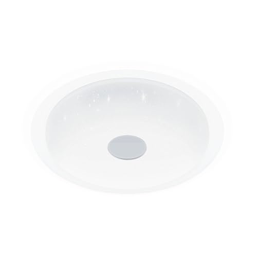 Eglo Plafonnier LED Macchioni, lampe de plafond cristal avec télécommande, luminaire à intensité variable, éclairage de bureau en métal et plastique blanc, blanc chaud - froid, 55x12 cm