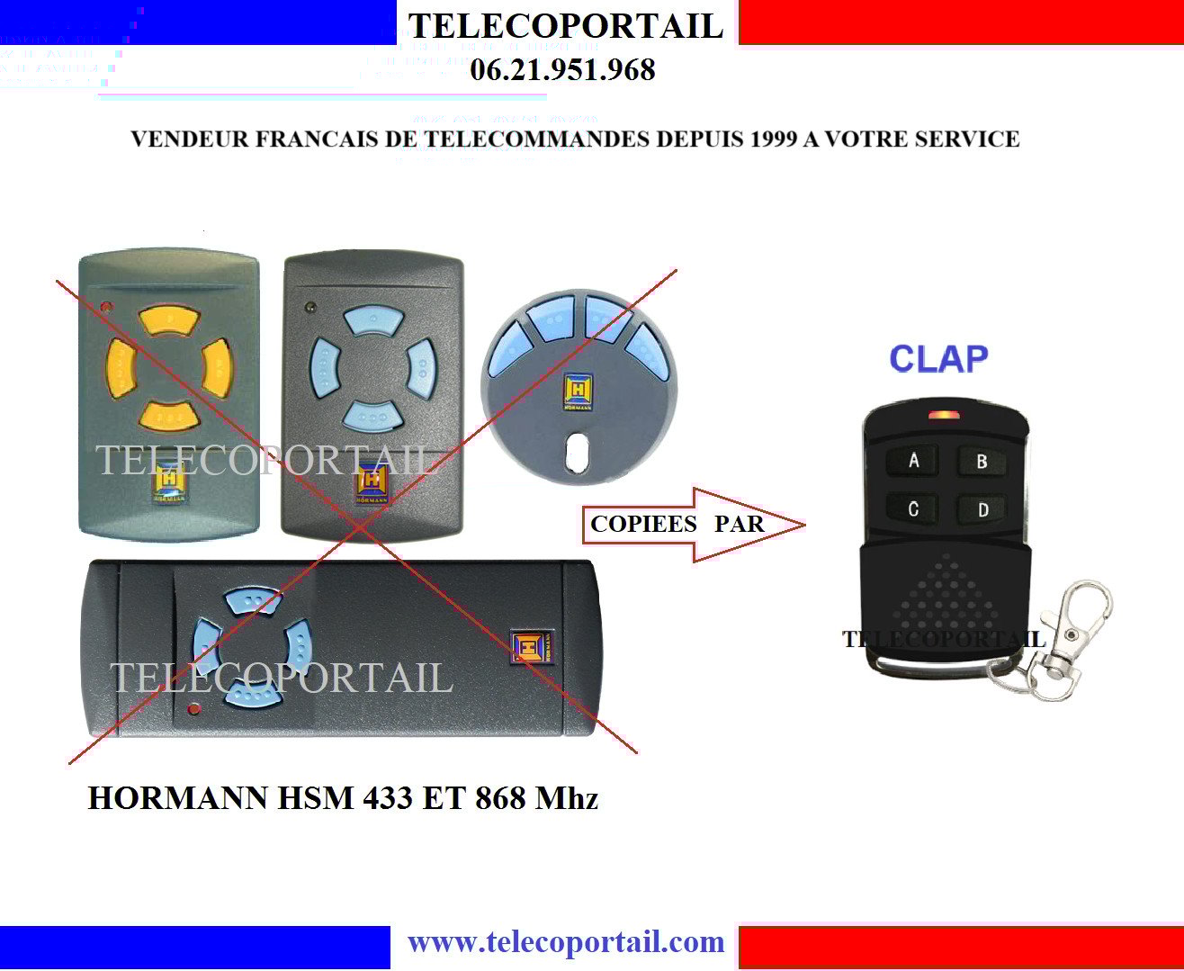 TELECOMMANDE COPIEUSE MULTIFREQUENCE HORMANN HS4, HSM4, HSP4 433 ET 868 Mhz