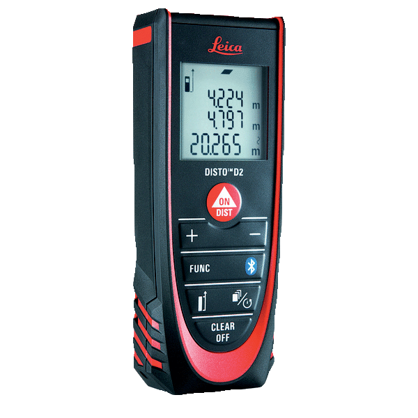 Leica DISTO D2 – télémètre laser multifonction, avec Bluetooth (fonctionnalité application) pour mesures de distance, de surface et de volume (utilisation intérieure & détection de la pièce finale)