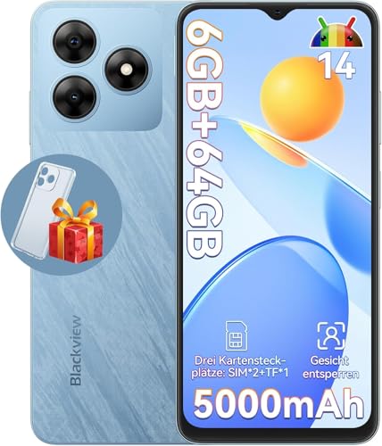 Blackview Wave 8C Telephone Portable Pas Cher 6Go+64Go/TF 2To, Android 14 Smartphone Débloqué 4G Dual SIM, Octa Core, Écran 6.5" HD+/60Hz, Batterie 5000mAh, 13MP+8MP, Face ID/GPS/OTG/FM/2Ans Garantie