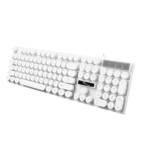 KOMBIUDA Clavier D’Ordinateur USB Filaire à Touches Rondes Lumineux Azerty, pour Gamer et Bureau, Blanc, Compact et Portable, Compatible Pc, Téléphone et Tablette
