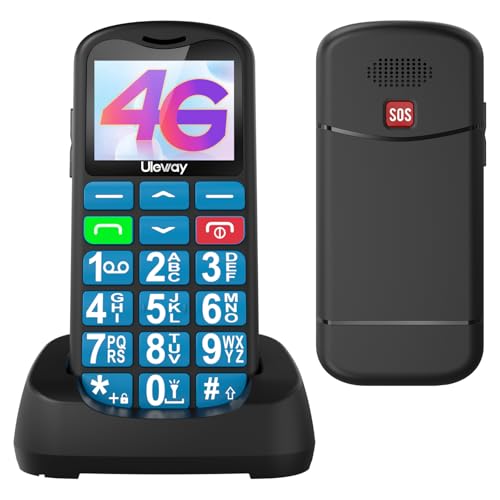 Tosaju Téléphone Portable 4G pour Personnes âgées Gros Bouton Fonction de téléphone Portable Simple Basic Unlock Sim Gratuit Facile à Utiliser LCD Affichage SOS Bouton Batterie 1000 MAH