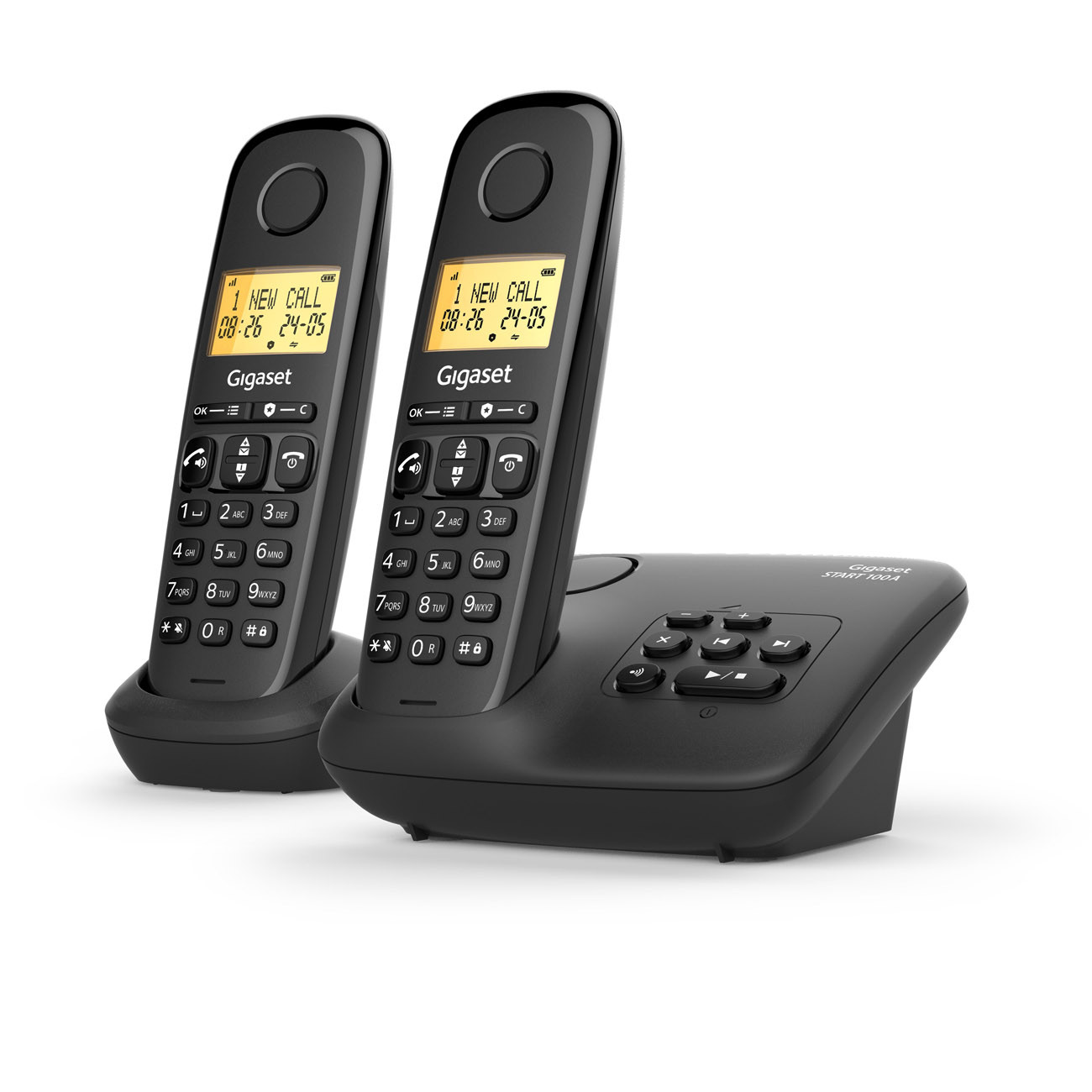 Gigaset Téléphone sans fil DECT Basic 100A Duo - Répondeur + Fonction mains libres - Noir