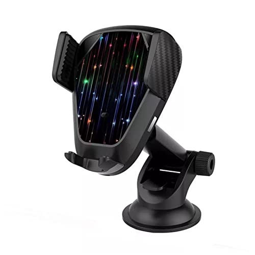 Support De Téléphone Rotatif Intelligent Et Chargeur sans Fil 2-en-1 pour Voiture, Support Telephone Voiture Induction, Fonction De Serrage Automatique, Charge Rapide 15 W, avec Éclairage RGB (Noir)