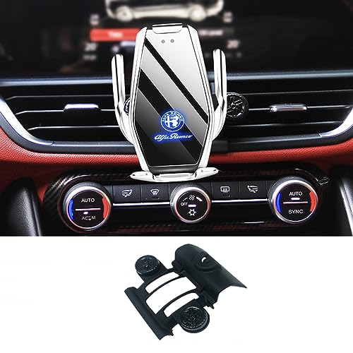 ZUMAHA Support Téléphone sans Fil Chargeur pour Alfa Romeo Stelvio SUV 2017 2018 2019 2020 2021 2022 2023 Voiture Air Vent Dashboard Induction Charge Rapide Accesoire