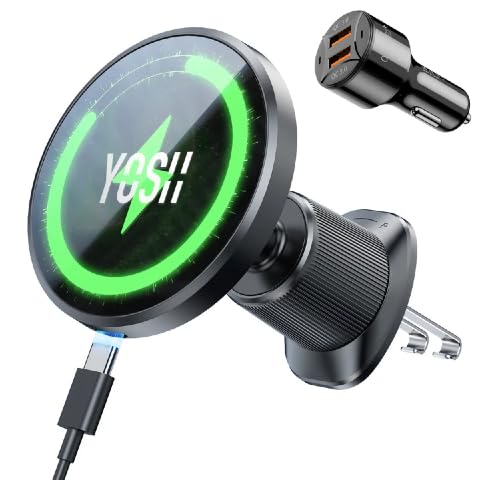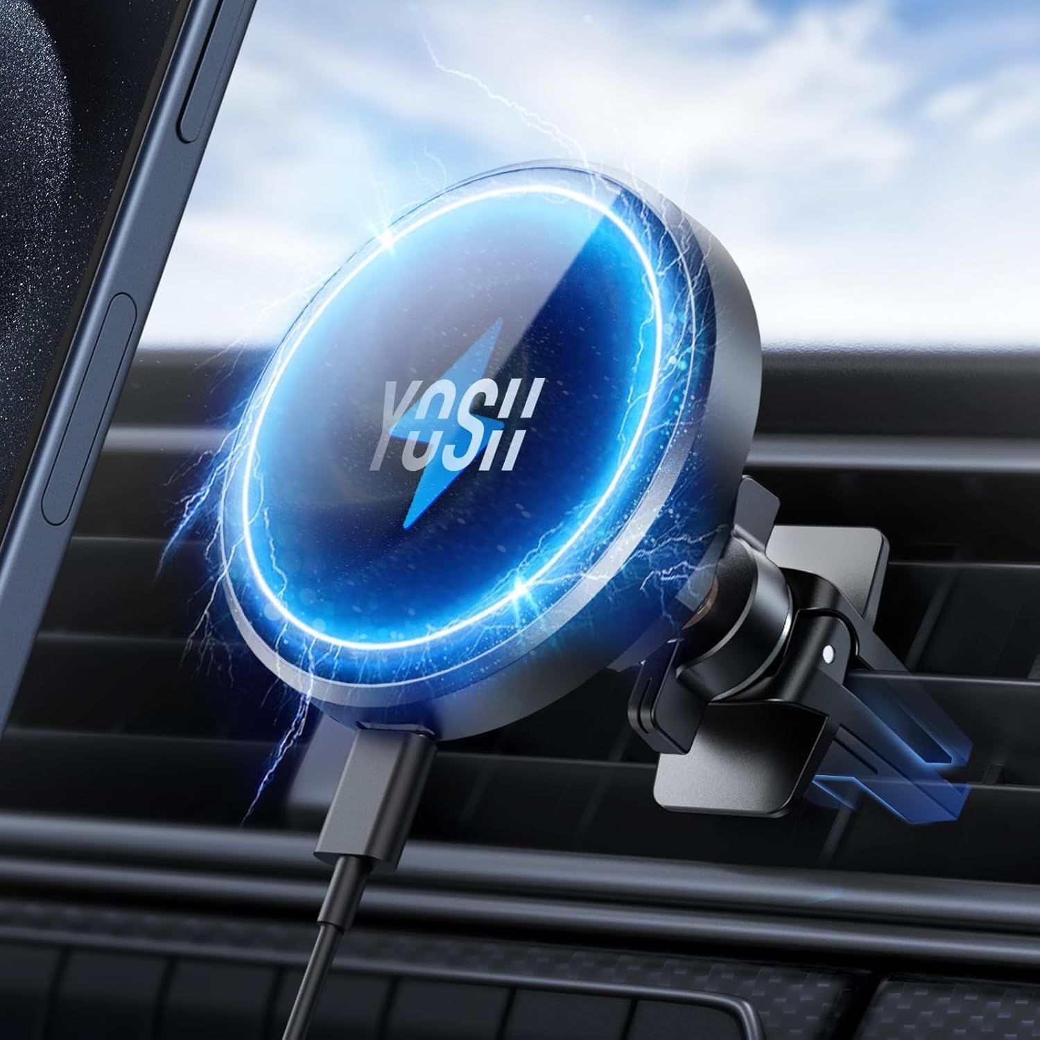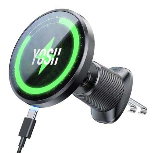 YOSH Support Telephone Voiture Induction [15W Charge Rapide] Chargeur Magsafe Voiture sans Fil, Chargeur Induction Véhicules Magnetique Compatible avec iPhone 16/15/14/13/12 Series & étui mag-Safe