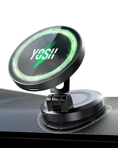 YOSH Support Telephone Voiture Induction [15W Charge Rapide] Chargeur Magsafe Voiture sans Fil, [Pliable & Caché] Magnétique Chargeur Véhicules, pour Tableau de Bord, pour iPhone 16/15/14/13/12 Series
