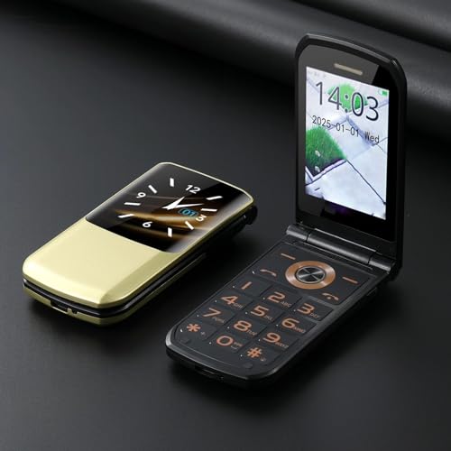 XUMIUZIY Téléphone à Clapet 4G LTE – Mini Téléphone Portable Non activé pour Personnes âgées, écran de 1,77 Pouces, Haut-Parleur, Double SIM, Double Veille, Numérotation en Un C LIC, (Gold)