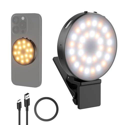 NEEWER Version d'Entrée de Gamme Lampe Selfie Magnétique Compatible avec MagSafe iPhone, Anneau LED Métallique 1W à Clip pour Téléphone Portable, Vidéoconférence, CRI95+ 840lux/0,2m,NL32R