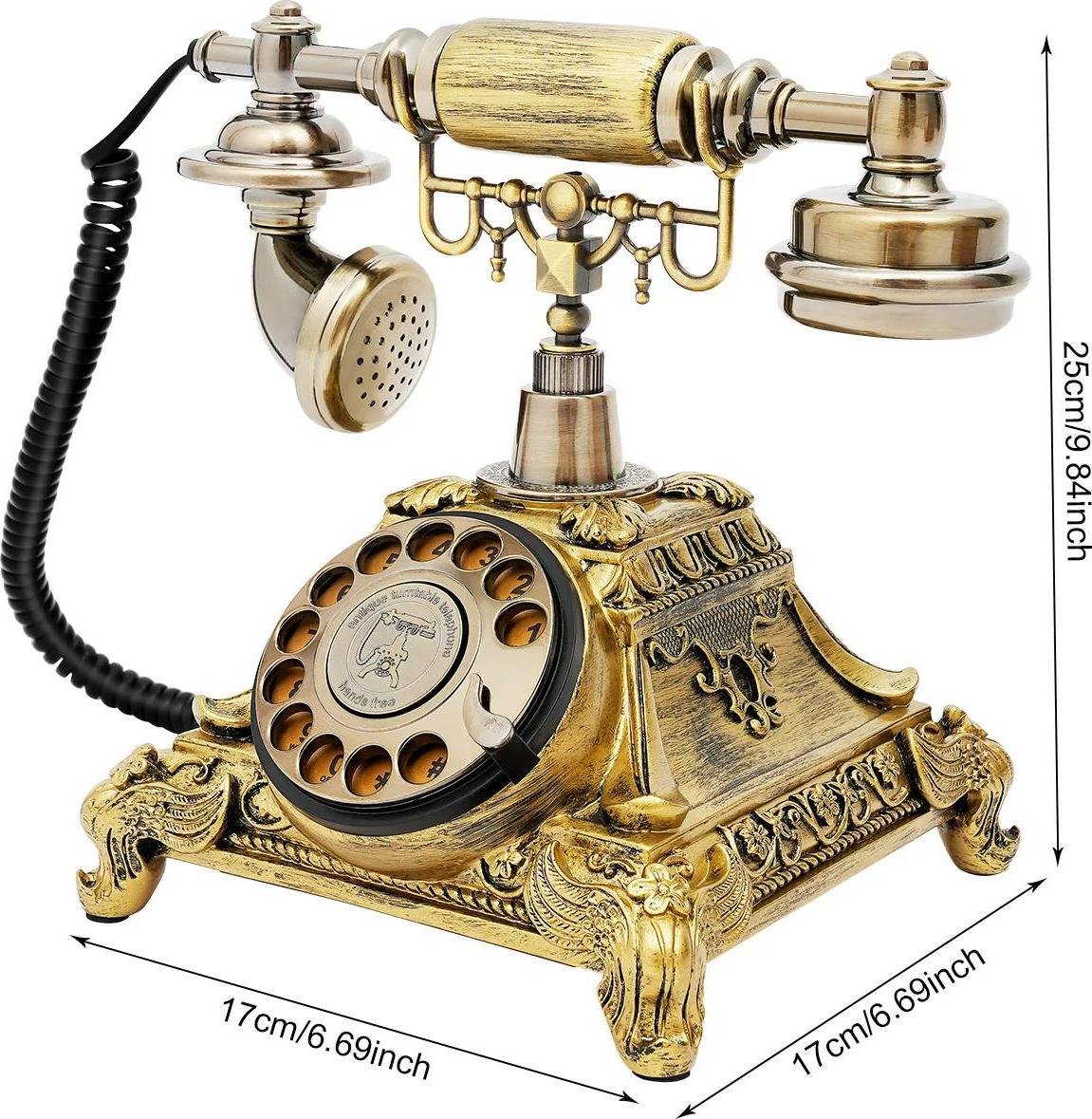 Téléphone à cadran rétro - Téléphone fixe filaire - Design vintage - Résine - Or