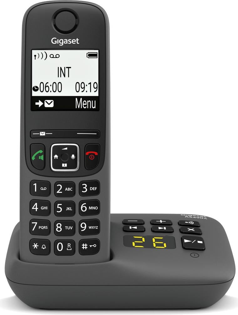 Gigaset AS690A - Téléphone DECT sans fil avec répondeur - Grand écran graphique - Excellente qualité sonore - Contrôle du volume - Fonction mains libres - Ne pas déranger - Noir [Version Pays-Bas]