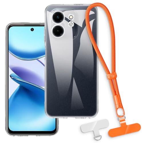 OAGELIM 2-en-1 Coque de Protection avec Dragonne Compatible avec Infinix Smart 9 HD 4G Housse de Téléphone avec Lanyard Détachable, Anti-Dérapante Anti-Perte (Orange)