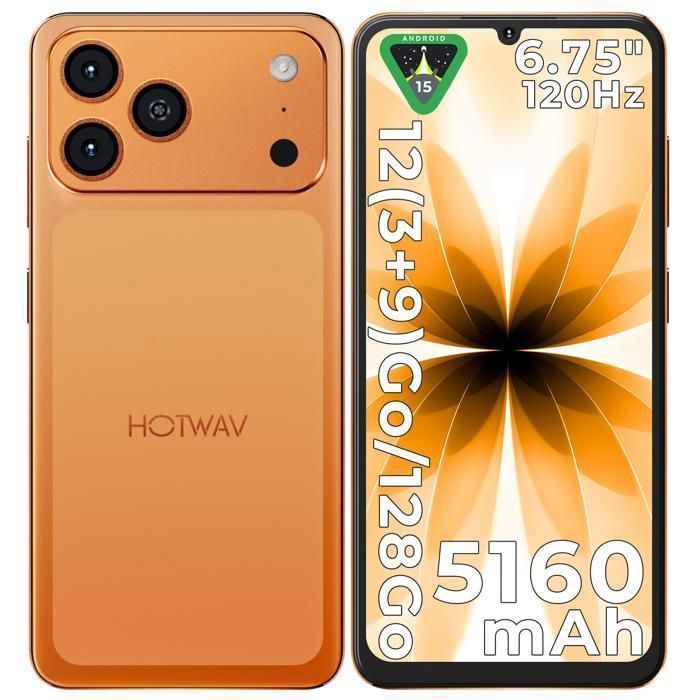 Smartphone Pas Cher HOTWAV A17 Pro Max-Cadeaux Valentin-675 Pouces HD+ 5160mAh 3+128Go 13MP Téléphone Portable GPS/Face ID - Orange
