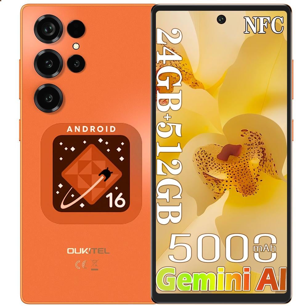 Smartphone OUKITEL C66 Android 16 Telephone Portable 6,73" HD+120Hz, 24 Go + 512 Go, 64MP 5000mAh NFC - GPS - Face ID - Empreinte Digitale - Orange