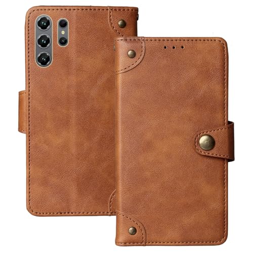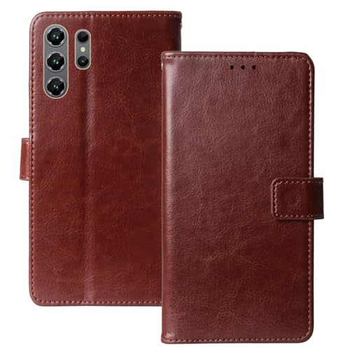 Tnviud Cuir Housse Téléphone Case pour HOTWAV A26 Ultra 6.75" Coque Étui Cas Couverture Protecteur Cover Portefeuille Antichoc Cover Case (Brun)