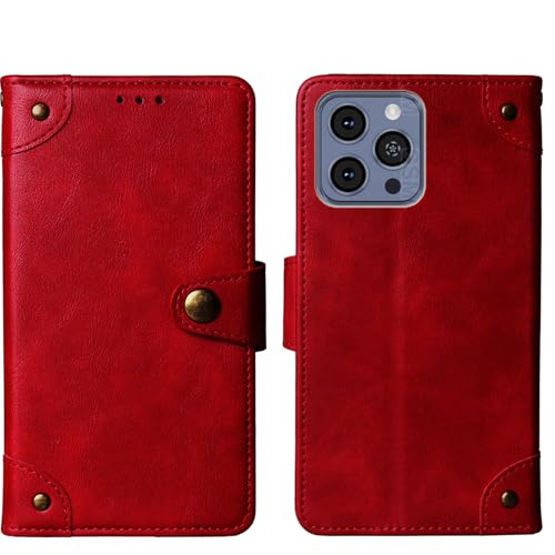 Tnviud Cuir Housse Téléphone Case pour HOTWAV A16 Pro Max 6.75" Coque Étui Cas Couverture Protecteur Cover Portefeuille Antichoc Cover Case (Rouge)