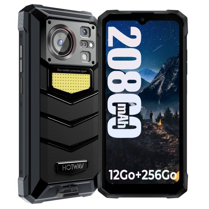 HOTWAV W11 Téléphone IP68 Étanche 20800mAh 6.6 FHD+ 12+256Go Smartphone Robuste 64MP+Vision Nocturne 24MP 4G NFC/Face ID-Noir