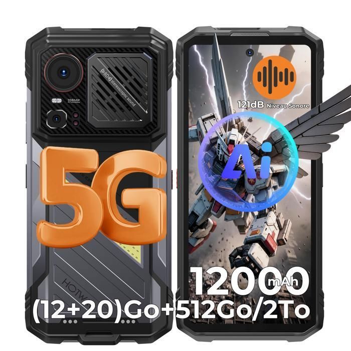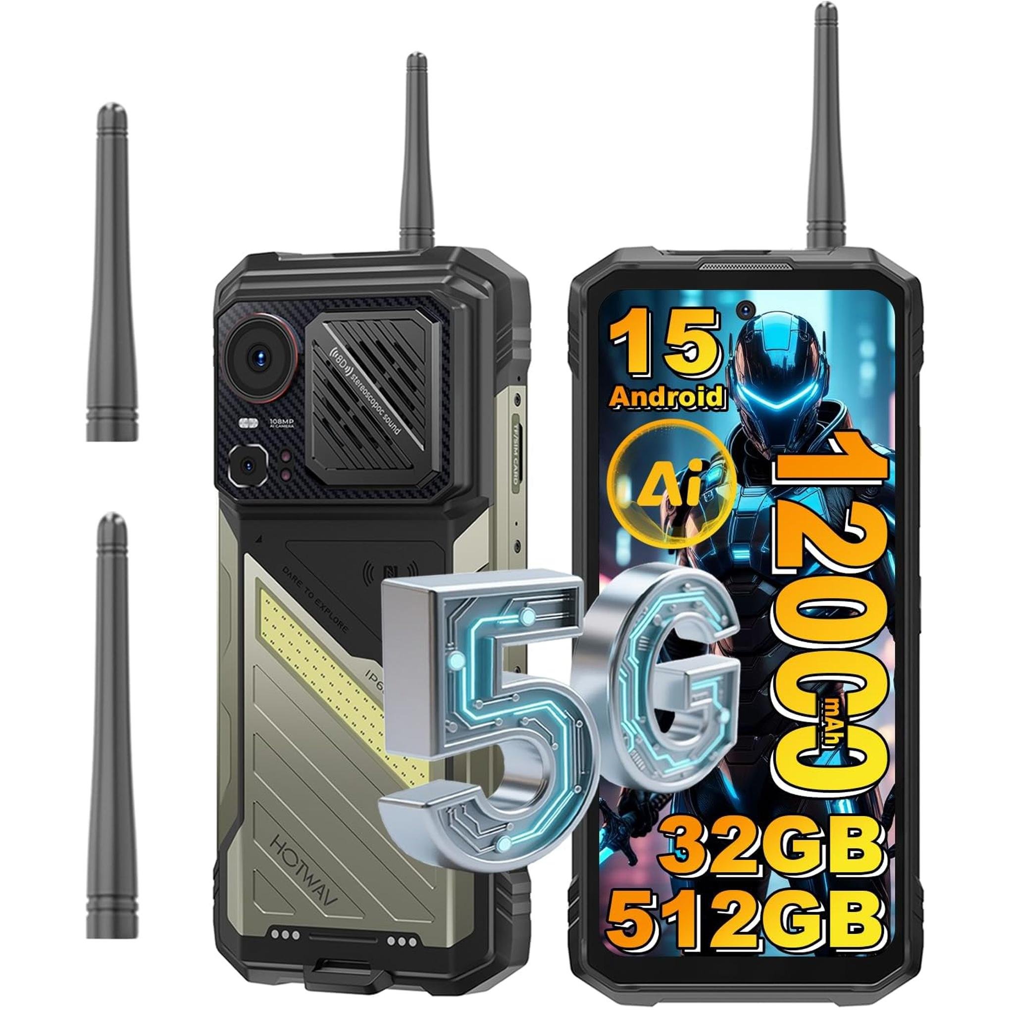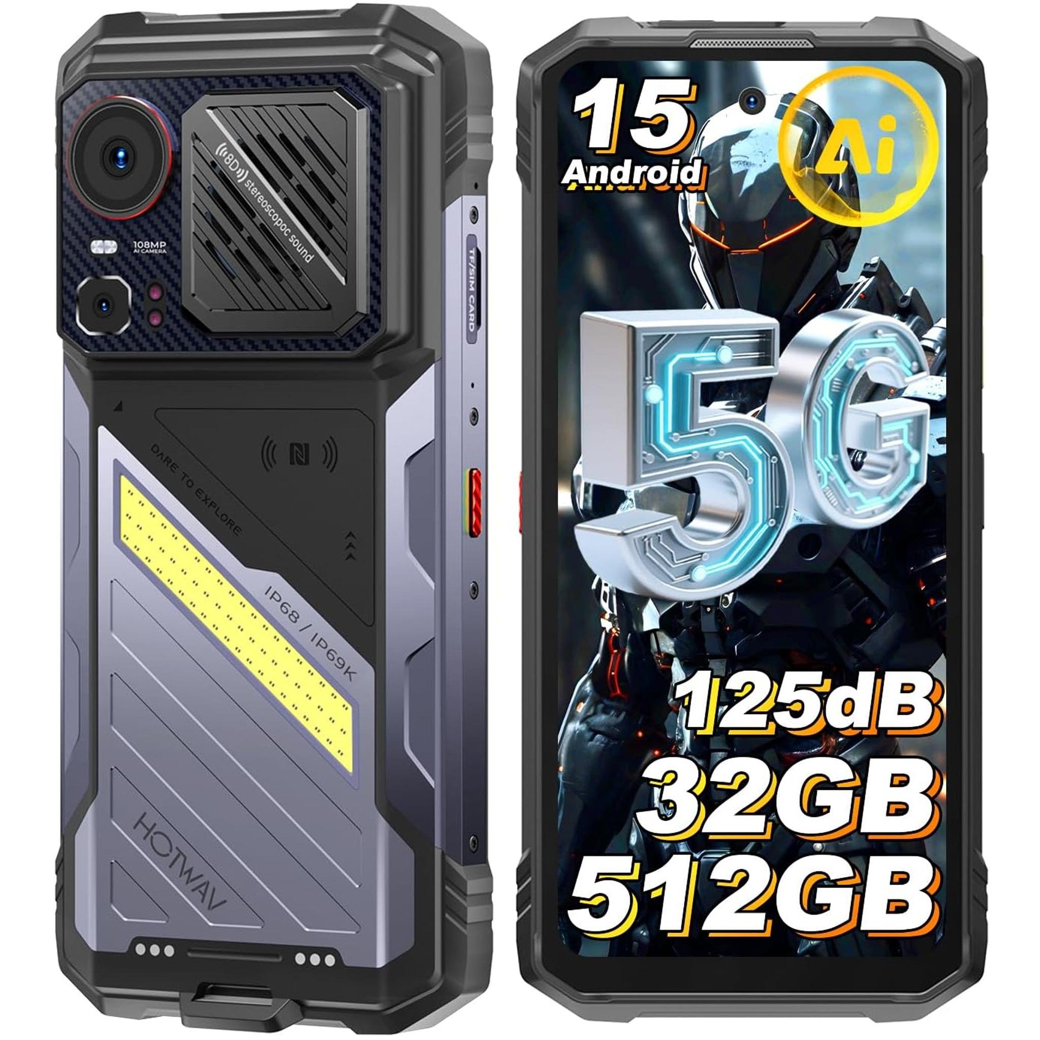 HOTWAV Hyper 8 Ultra Telephone Portable Incassable 5G, 32Go+512Go Smartphone Android 15, 6.8" FHD+ 120Hz, 12000 mAh, 108MP Octa-Core, IA, Double SIM