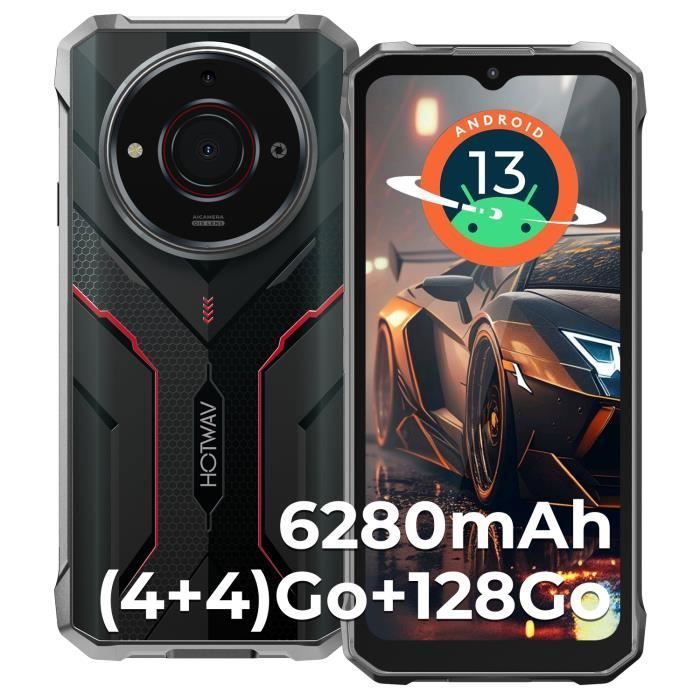 Téléphone Robuste HOTWAV T7S 4+128GoSmartphone IP68 Étanche 652 HD+ Batterie 6280mAh Caméra SONY 21MP Double SIM 4G - Noir