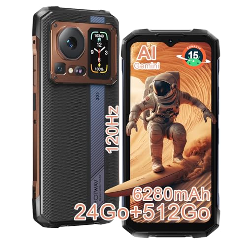 HOTWAV Cyber 16 Pro Téléphone Portable Incassable, 24Go+512Go/TF 2To, Batterie 6280mAh, 108MP+32MP Caméra, Écran 6.6" FHD+ 120Hz Android 15 Smartphone Incassable, Dual SIM 4G, NFC, Face ID, OTG, GPS