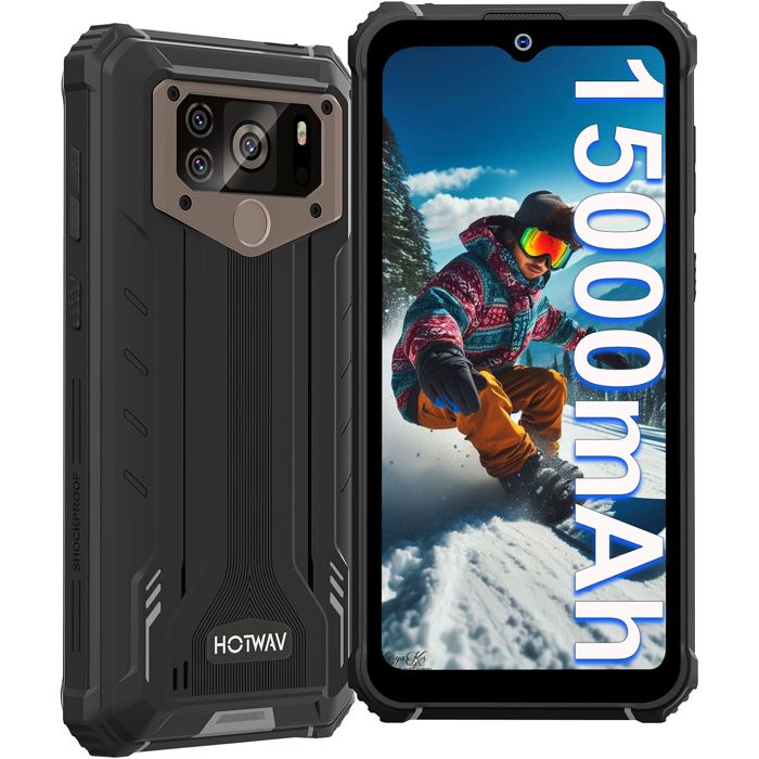 Telephone Portable Incassable HOTWAV W10 Pro 6Go+64Go 15000mAh Grande Batterie 6,53"" HD+ 20MP Triple camera Android 12 NFC - Noir