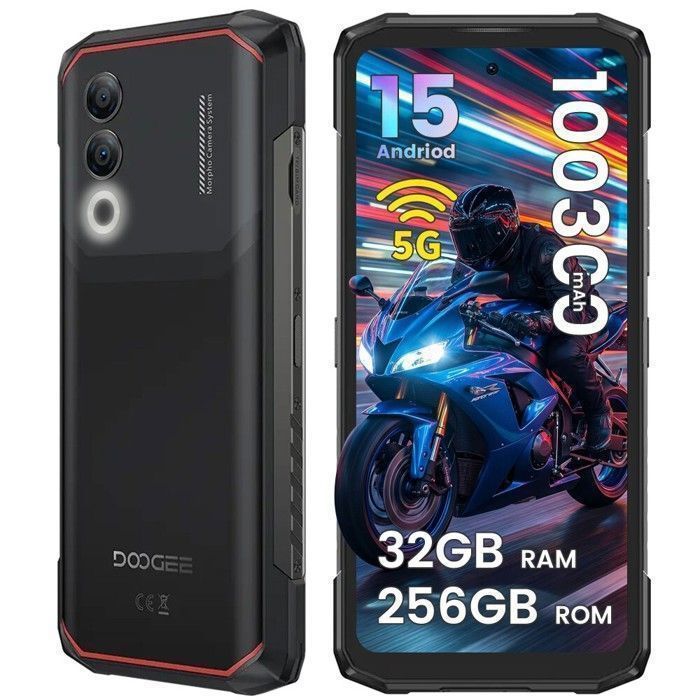 Smartphone Incassable DOOGEE Blade10 Pro Energy - 4.5G 6.56” HD+ Telephone Incassable Android 15 - 6150mAh 32Go+256Go -NFC- Rouge