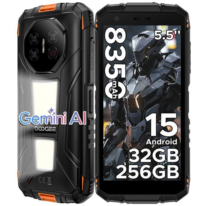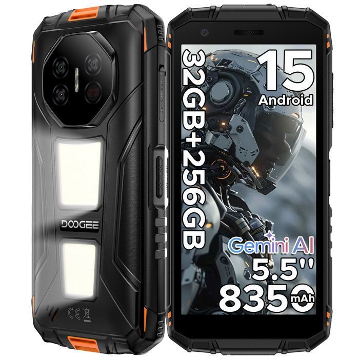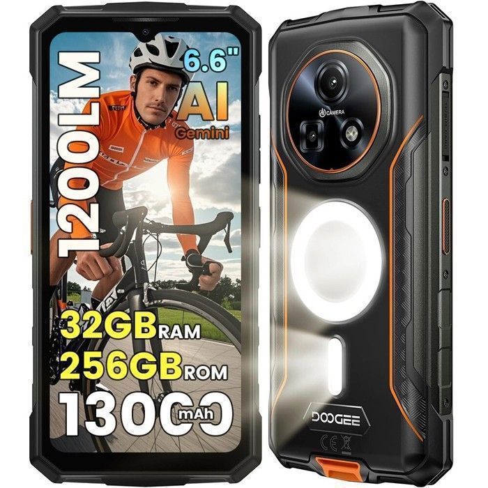 Smartphone Robuste 5G DOOGEE Fire 7 Pro Android 15 32Go+256Go 66 13000mAh Telephone Incassable Caméra 64MP Double SIM/NFC Orange