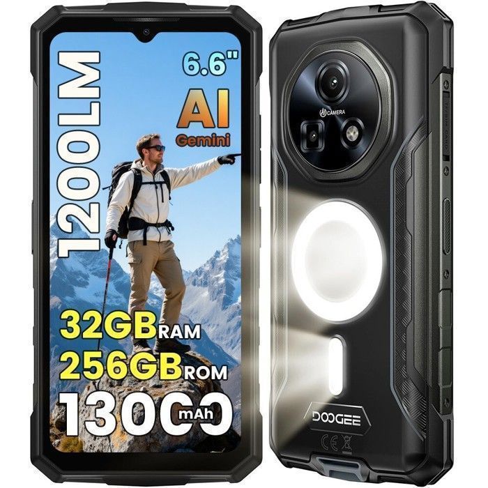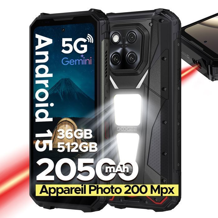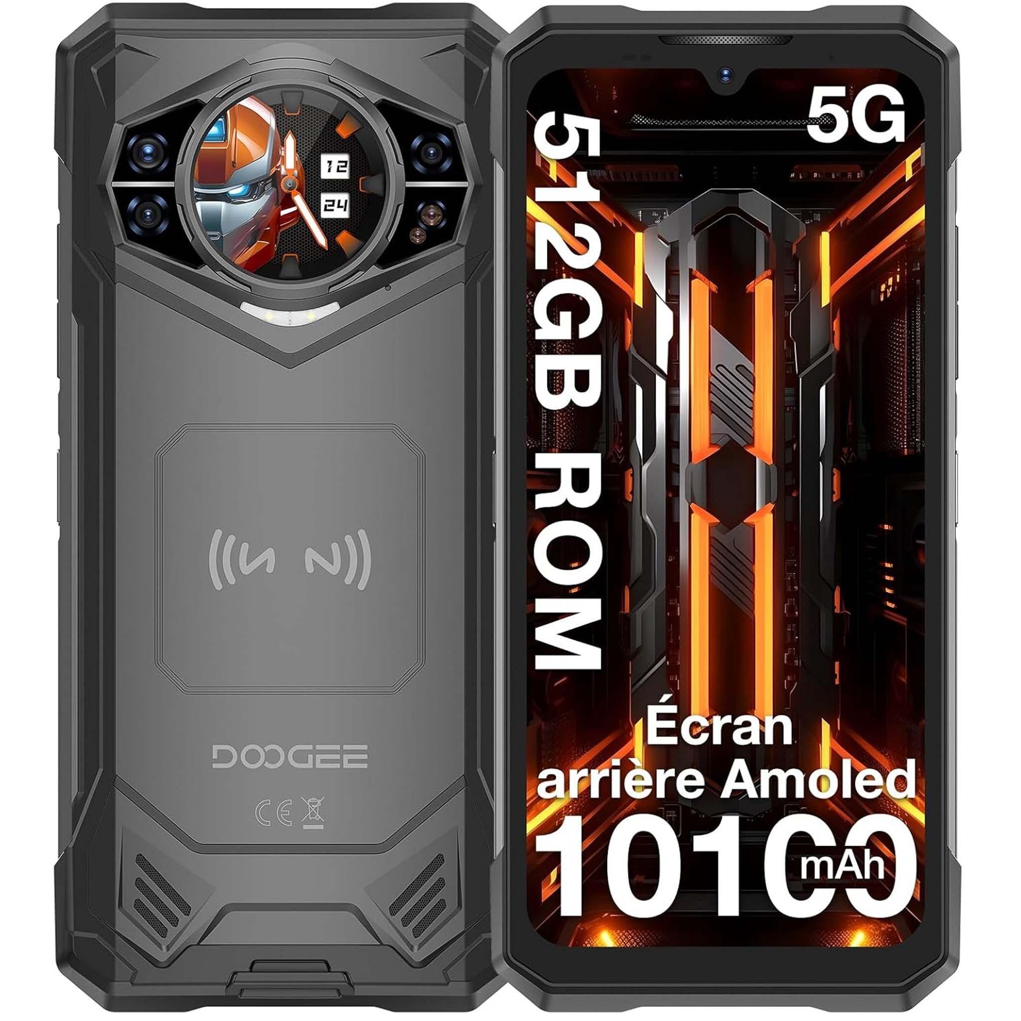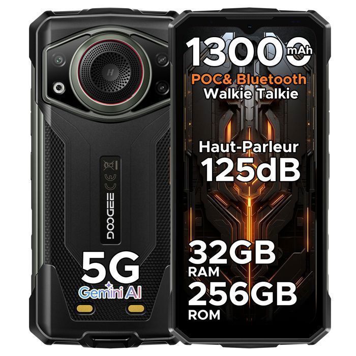 Smartphone Robust DOOGEE Fire 7 Pro Telephone Portable Incassable 5G 32Go+256Go 13000mAh 6,6'' 64MP 1200 Lampe Projecteur Face ID - OTG - NFC